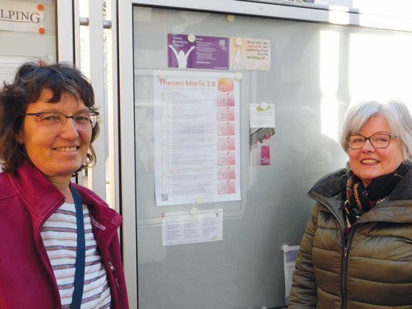 Die Fraueninitiative Maria 2.0 entsprang einem Lesekreis im katholischen Münster, Stadt des Westfälischen Friedens (1648), im Mai 2019. Statt hinter verschlossenen Türen den (Macht-)Missbrauch des Klerus zu beklagen, traten die Frauen vor den Kirchentüren an die Öffentlichkeit, um gegen die bestehenden (Macht-)Verhältnisse in der Kirche zu protestieren. Mit Maria, der Ikone des konservativen Katholizismus, forderten die Frauen einen Neustart (2.0) und fanden viel Zuspruch (aber nicht nur) – auch im konservativen Oberschwaben und auch beim Katholischen Frauenbund, so auch in Biberach, wo am 21. Februar 2021 Birgit Hahn und Andrea Kerriou das Thesenpapier am Kirchplatz anbrachten.