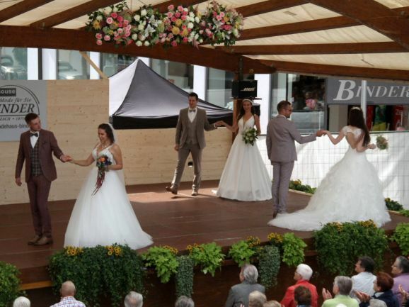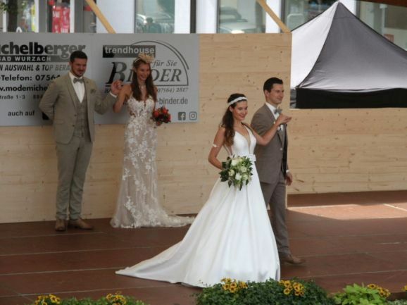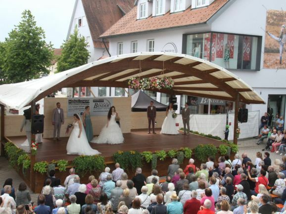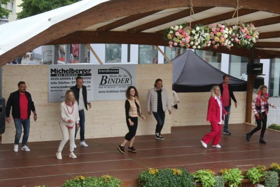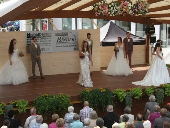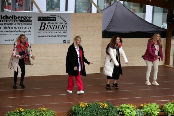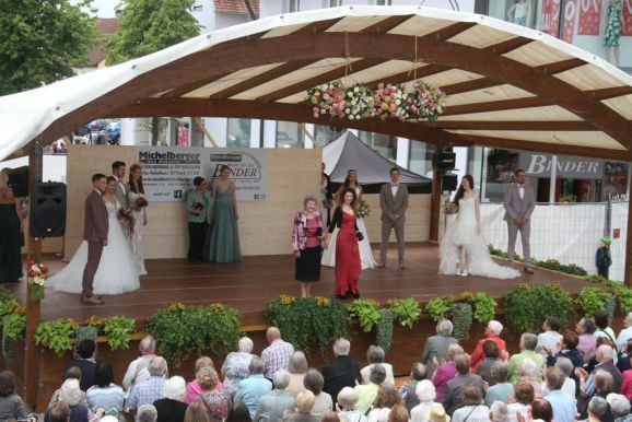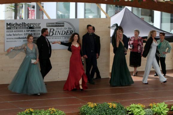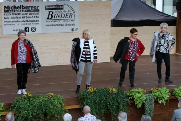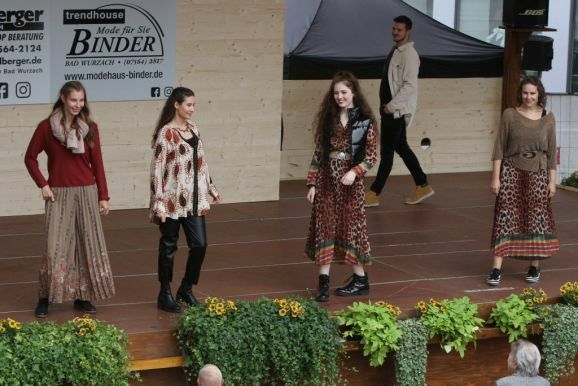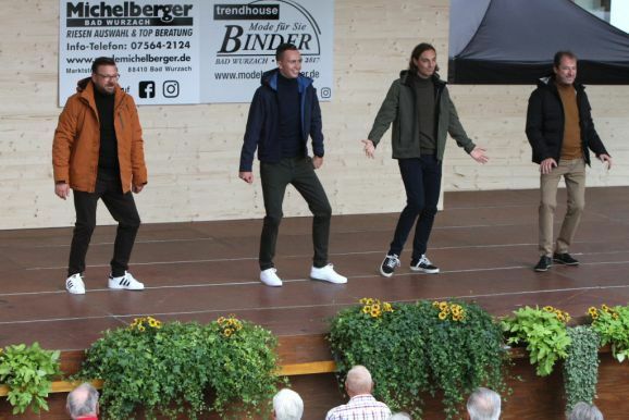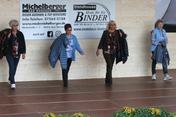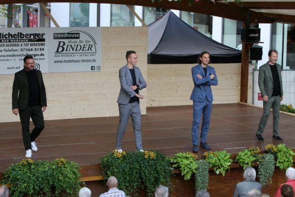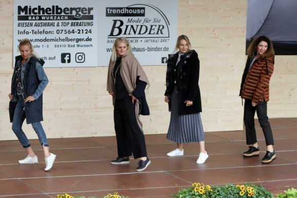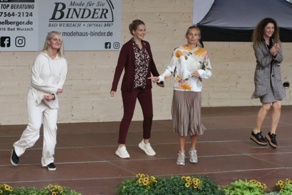 Die Models präsentierten auf die bewährte Choreographie von Gaby Lipp die aktuelle Herbst/Winterkollektionen der vier Modehäuser in der „Modestadt Bad Wurzach“. Da war für jede Altersgruppe etwas dabei, und der große Publikumszuspruch beweist, dass die Modenschauen – auch und gerade nach der langen Pause wieder – neben der Musik ein wichtiger Bestandteil des Stadtfestes sind.