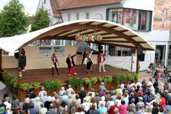 Nach dem entspannten Auftakt wurde es dann auf der Bühne beim Spital ernst: Die erste Modenschau der Modehäuser Michelberger und Binder unter der bewährten Moderation von Alfred Bliem stand an. Unterstützt wurden die bewährten Models von Bliems-Bunte-Bühne dabei von Mitgliedern der Showtruppe von Joy of voice.