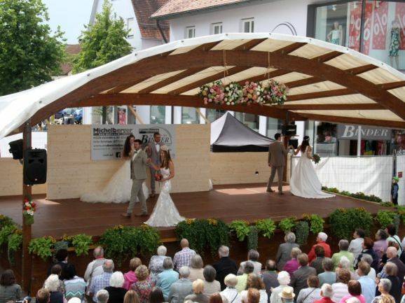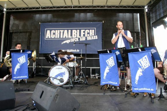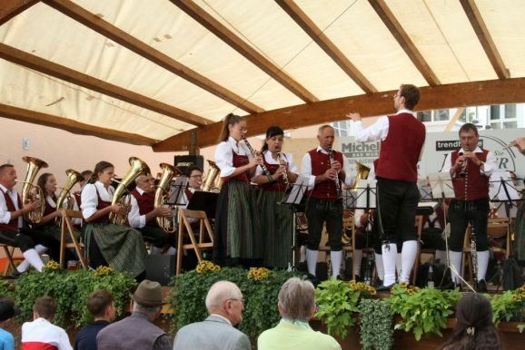 Auch am Sonntag wurde (Blas-) Musik groß geschrieben: Zwischen und nach den beiden Modenschauen spielten die Musikkapelle Ziegelbach bzw. zum Abschluss dann die Musikkapelle Unterschwarzach auf der Bühne beim Spital, während die Gruppe Achtalblech für die musikalische Mittagsunterhaltung beim Rathaus sorgte.