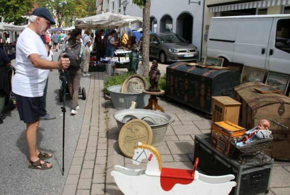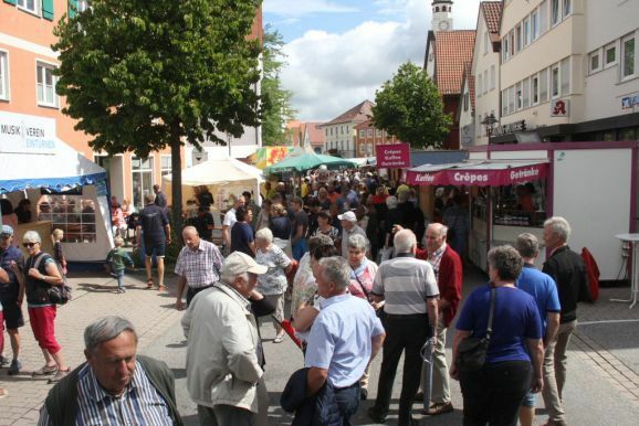 Vom Postplatz bis zur Luxeuil-Brücke wälzte sich eine unüberschaubare Menge Besucher durch die schmale Gasse zwischen den Hütten und Buden, bei denen es für jeden Geschmack das richtige Ess- Erlebnis gab. Wer wollte konnte bei den Tombolas beim DRK und beim Tierschutz Preise gewinnen und dabei die Arbeit der beiden Organisationen unterstützen.