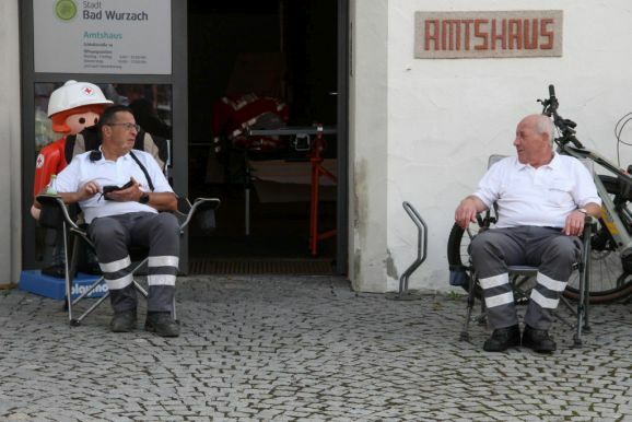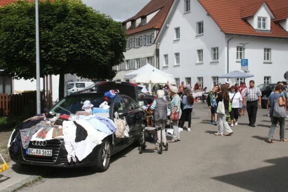 Mit einem Weißwurstfrühstück in der großen Hütte des Fanfarenzuges begann der Stadtfestsonntag mit einem weiteren kulinarischen Mosaikstein, untermalt von den Blasmusikklängen der „Bänkle´s Mugge“, einer bunt-zusammengewürfelten Truppe von Blasmusikern aus der Großgemeinde.