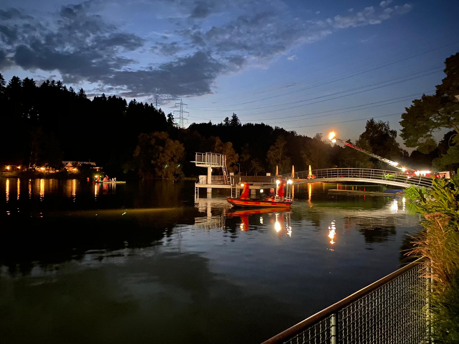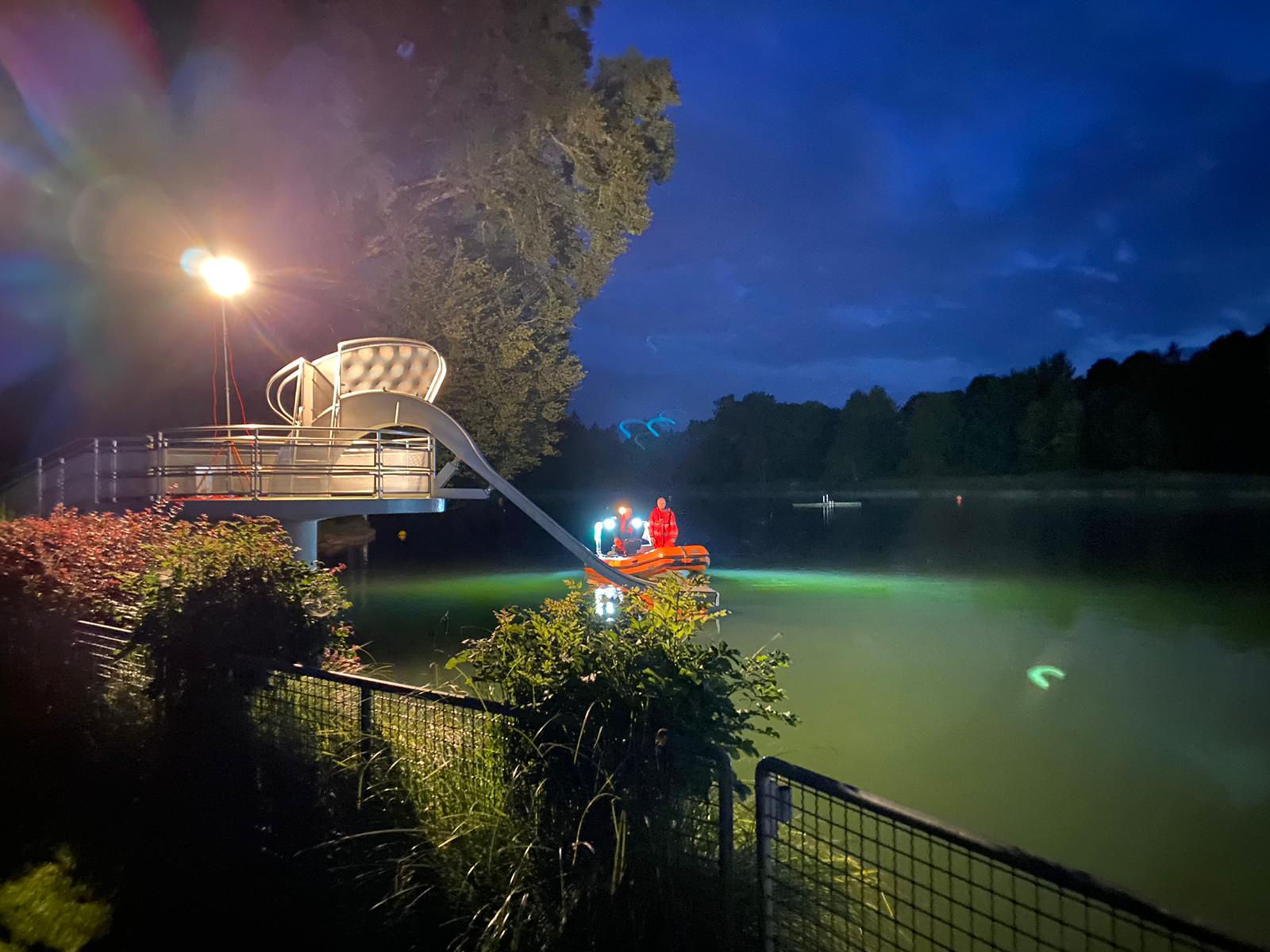 Um 20:30 Uhr erfolgte durch die Integrierte Leitstelle Bodensee-Oberschwaben die Alarmierung der Abt. Stadt der Feuerwehr Ravensburg, sowie der Rettungsdiensteinheiten von Deutschem Roten Kreuz und DLRG in das Naturfreibad Flappach. Eine Mitarbeiterin der Badeaufsicht stellte bei der Schließung des Freibades herrenlose Kleidungsstücke und Badeutensilien im Uferbereich fest. Die Sachlage vor Ort erhärtete den Verdacht einer Person unter Wasser oder in Notlage im Uferbereich.