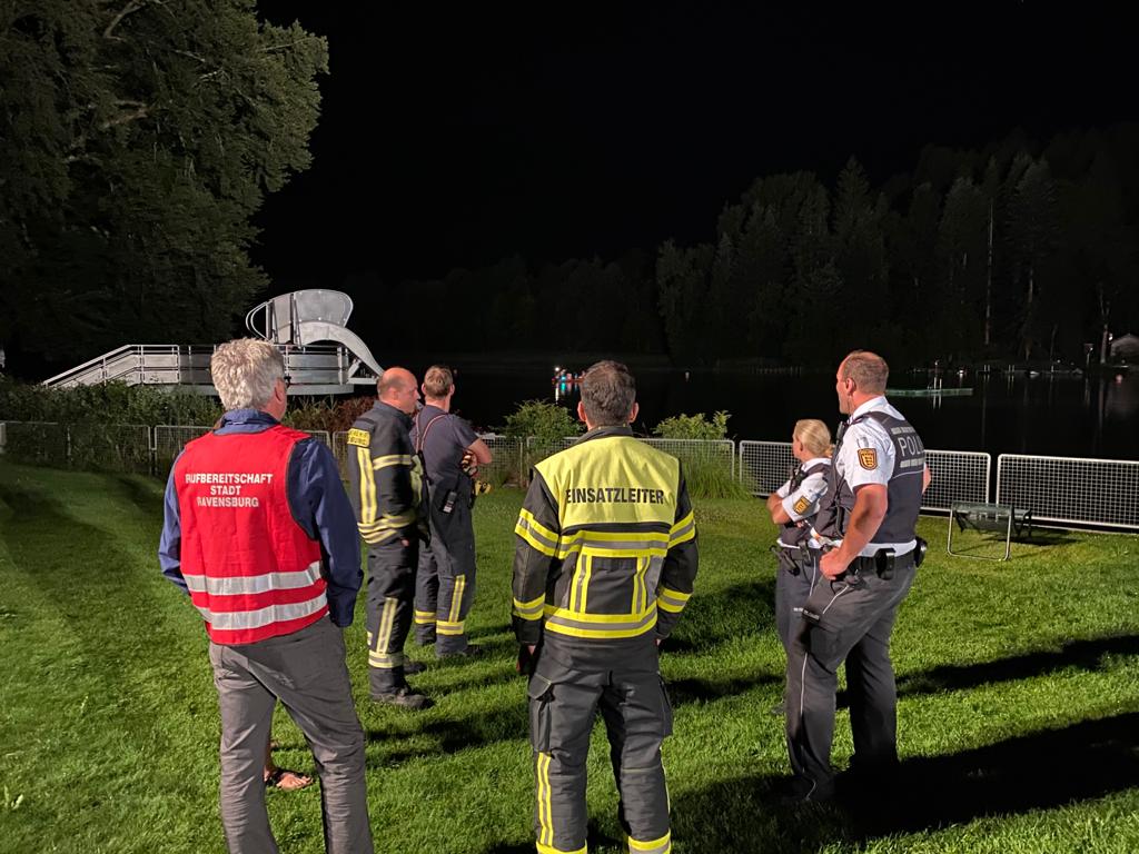 Neben der Feuerwehr und der Polizei Ravensburg waren ebenfalls der Notarzt und Rettungsdienst der DRK-Rettungswache Ravensburg, ein Organisatorischer Leiter Rettungsdienst (OrgL) des Landkreises Ravensburg, die Kreisbereitschaftsleitung (KBL) des DRK, Einsatzkräfte der DRK-Bereitschaft Wangen, die DLRG Ortsgruppen aus Ravensburg, Wangen, Leutkirch, Bad Wurzach und Radolfzell, ein Polizeihubschrauber des Landes Baden-Württemberg sowie die Rufbereitschaft der Stadtverwaltung Ravensburg am Einsatz beteiligt.