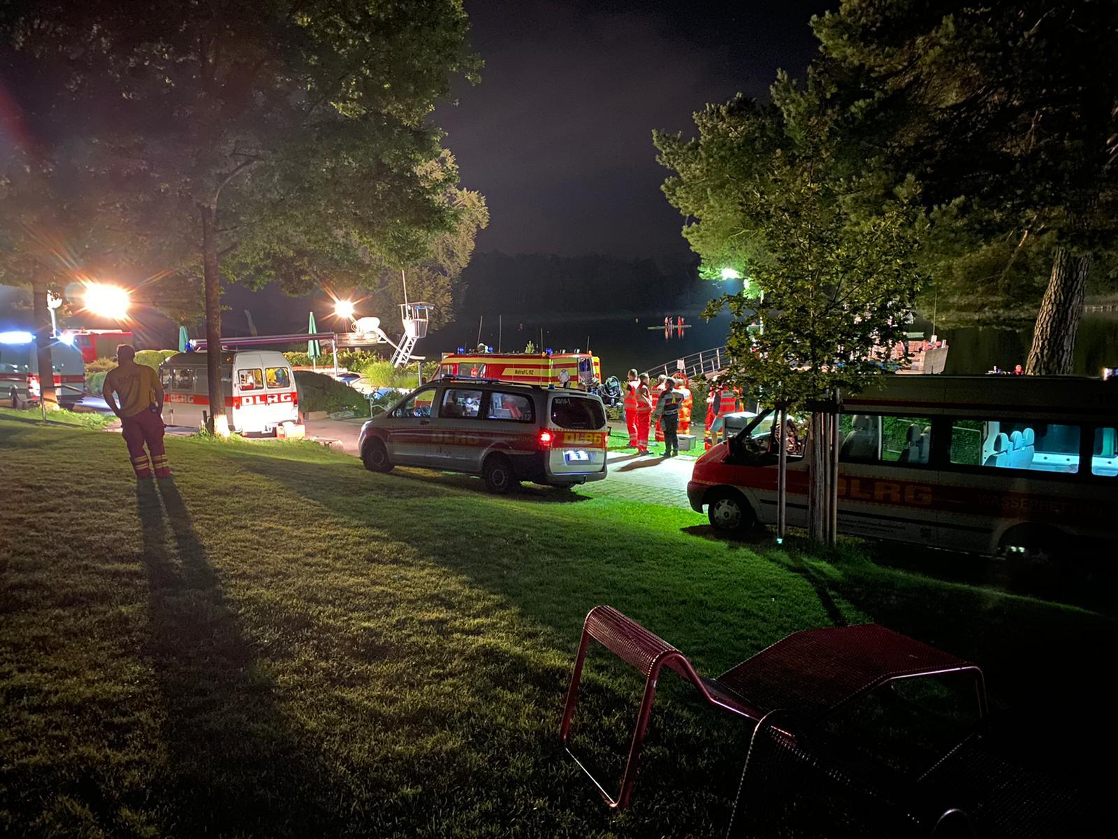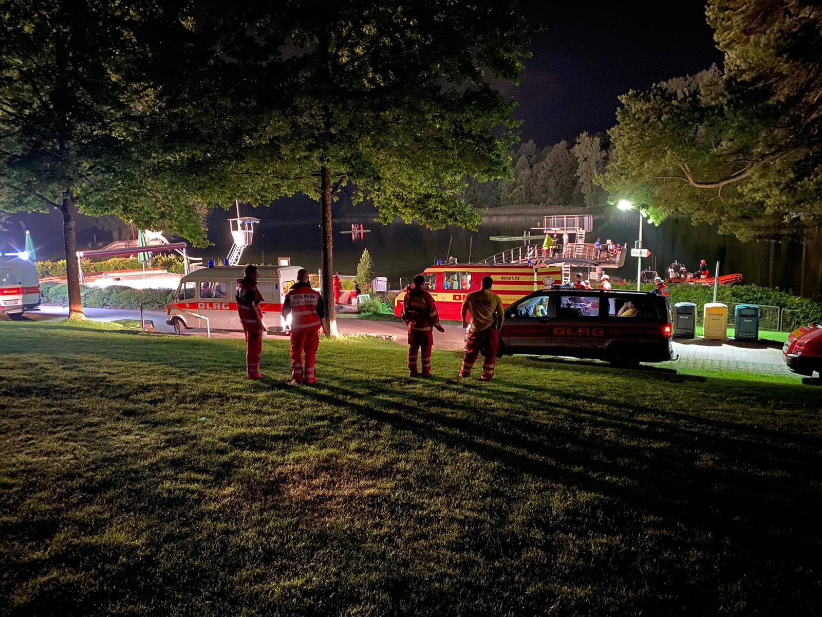 Durch die ersteintreffenden Kräfte der Feuerwehr wurden zwei vor Ort be-findlichen Tretboote besetzt sowie das Schlauchboot der Feuerwehr zu Wasser gebracht. Umgehend wurde damit begonnen den Uferbereich des Sees abzusuchen. Zeitgleich wurden Suchmaßnahmen mit Suchtrupps von Land eingeleitet. In enger Absprache mit den eingetroffenen Kräften der DLRG Ortsgruppen des Landkreises wurden drei Motorrettungsboote zu Wasser gelassen, die Suchmaßnahmen intensiviert sowie Taucher in den Einsatz gebracht.