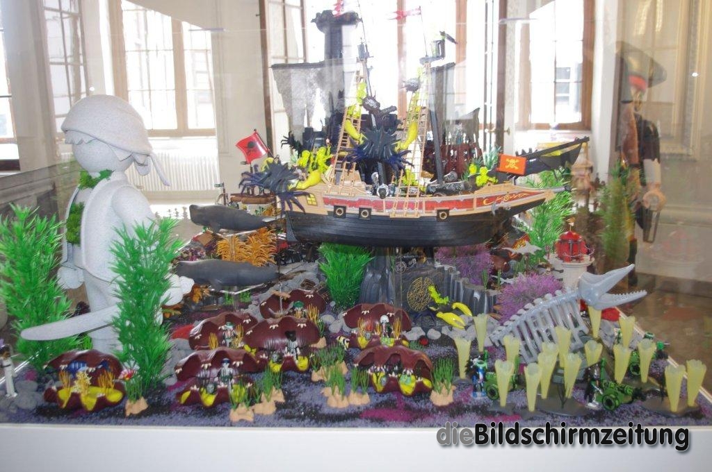 Oliver Schaffer verspricht, dass die Ausstellung Familien und Besuchern jeden Alters begeistern wird, die Ausstellung sei in den Dreiklang Historie, Alltag und Fantasie eingebettet. Es sei keine Verkaufsaustellung und viele Figuren gibt es so nicht zu kaufen, sondern sie wurden übermalt, zum Beispiel die rosa Prinzessin im Schneepalast in weiß (s. Titelbild) . Andere Exponate sind die Geisterpiraten oder auf Wunsch von Johler das Mittelalter, worin ein Hofnarr versteckt ist, den es in allen Räumen zu suchen gilt. Als erster Preis lockt ein Wochenende bei PLAYMOBIL in Zirndorf oder Sammelpakete der Firma. Selbstverständlich darf auch mit den Figuren gespielt werden.