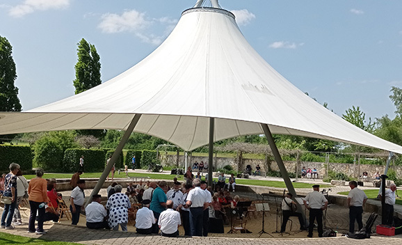 Aulendorf / Bad Saulgau - War es Tage zuvor noch nasskalt und sehr windig, hätte es beim ersten Konzert des Marinechores Aulendorf am 27. Mai unter freiem Himmel, im Kurpark der Sonnenhoftherme, nicht schöner sein können. Gerade Freiluftveranstaltungen bergen immer eine gewisse Brisanz. Ein aufziehendes Unwetter hat schon manchen Auftritt verblasen und zur Schlotterpartie werden lassen.