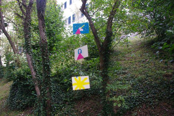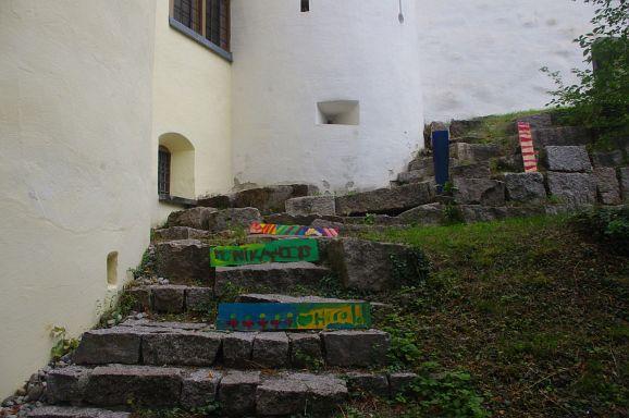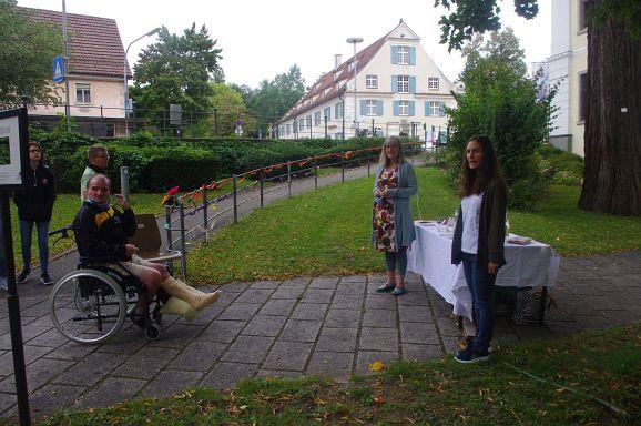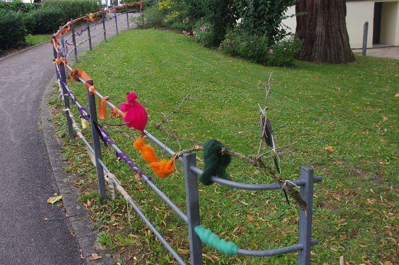 Es sind Steckobjekte und Windspiele zu sehen, Auch wurden Eisengeländer bunt und handfreundlich filigran umschlungen. Das Projekt wurde vom Kulturamt des Landkreises Ravensburg gefördert und initiiert. Umgesetzt wurde es mit Hilfe der Heilpädagogin Elisabeth Heiß und Isabell Weiß von den Zieglerischen Anstalten in Aulendorf, die dort die Leitung der Ambulanten Dienste inne hat.