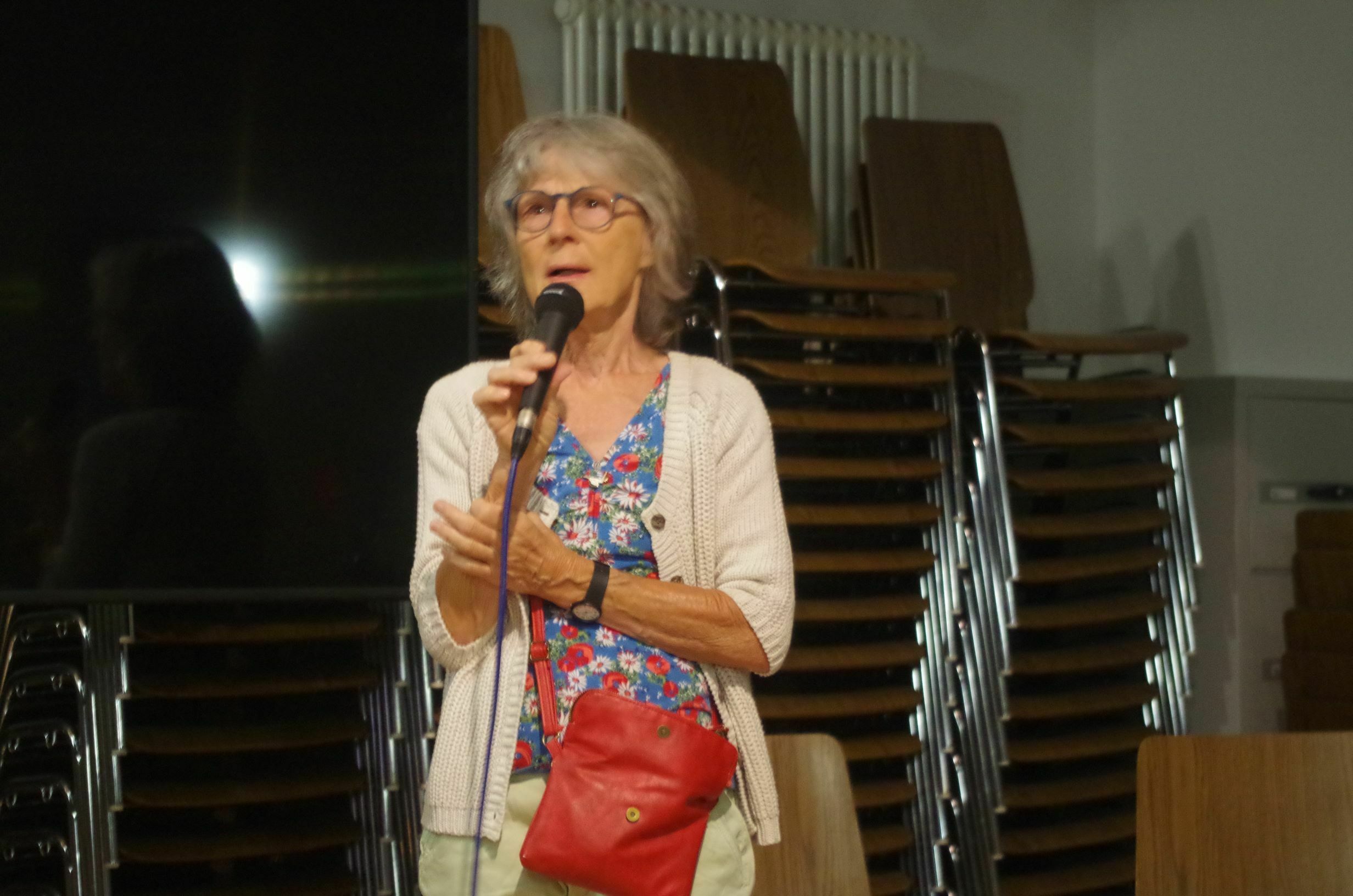 Zu Wort im Film kommen auch Rosemarie Vogt und Gudrun Bosch, die Mutter von Samuel. Sie muss in der anschließenden Podiumsdiskussion ihren Sohn vertreten, der mit einer Lungenentzündung und hohem Fieber zuhause im Bett liegen bleiben muss. Da sie im Hintergrund bei vielen Aktionen mitgewirkt hat, kann sie authentisch von den Stimmungen der Aktivist*innen berichten. „Das Klima ist kränker als ich“, berichtet sie von ihrem Sohn.