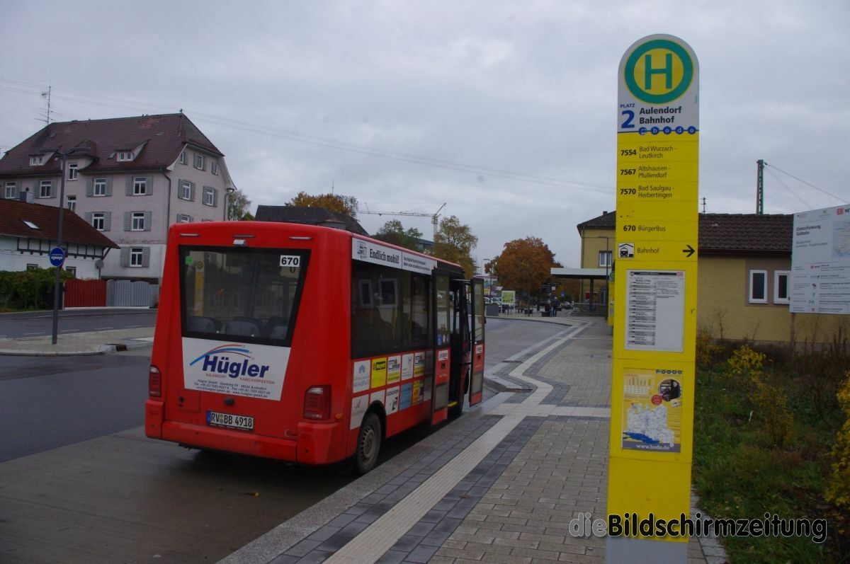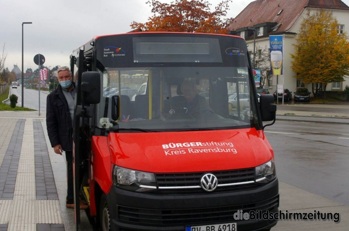 Aulendorf – Bahnhof 10 Uhr, der Bürgerbus wartet schon einige Minuten, bevor er sich auf die zweite Runde durch alle Ortsteile der Stadt begibt. Wolfgang Bartel, der Vorsitzende des BürgerBus Aulendorf e.V. hat soeben zu Ende gefrühstückt und fährt die Runde mit. Seit zwei Jahren gibt es den Bürgerbus und im aktuellen Monat Oktober waren es zur Hälfte 181 Fahrgäste, nicht schlecht, wie er meint.