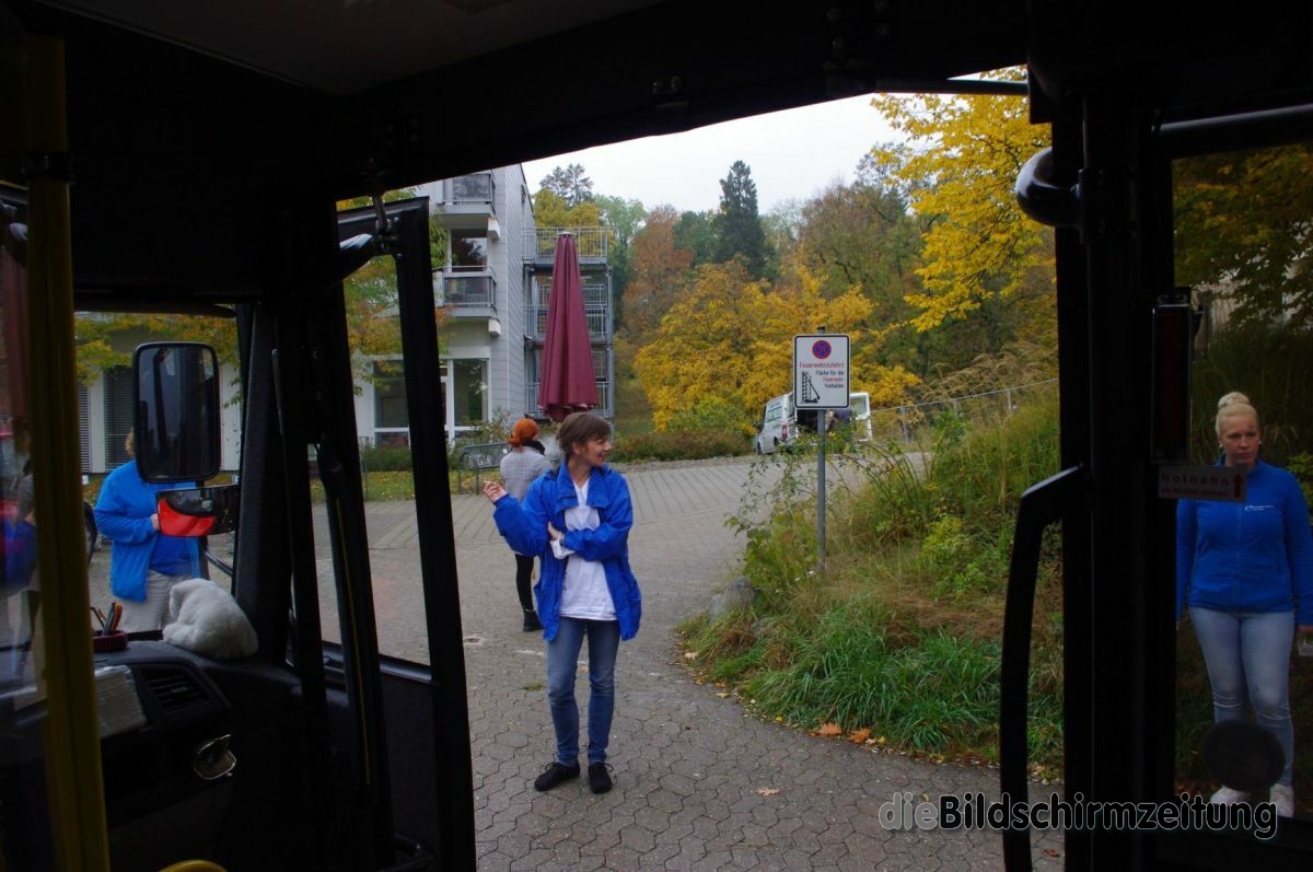 Hartmut Holder ist einer der 16 Fahrer, nein 15 Fahrer, und seit wenigen Wochen eine Fahrerin Ruth Willburger. Gerne hätten sie noch eine weitere weibliche Verstärkung im Männerclub. Aber die Fahrt ist schon im Gange am Schulzentrum vorbei über den Bändelstock zum LazBW und der Haltestelle Jägerhaus, einem Ausflugsziel und Speiselokal. Es ist ein schöner Herbsttag mit buntem Laub und vom Atzenberg geht es hinunter über Laubbronnen, Ried und Ebersbach. Die Gemeinde Ebersbach-Musbach erstreckt sich entlang der Atzenberger Höhe als Teil der europäischen Wasserscheide Rhein/Donau zwischen 580 und 705 Metern über Meereshöhe.