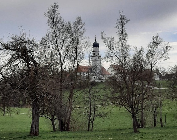 Aulendorf/Region – 13 Uhr, das Wetter gut, machte ich mich auf den Weg. Über Steinenbach, an der Dobelmühle vorbei nach Münchenreute bis Wolpertswende waren die ersten Kilometer , um in Gang zu kommen. Auf der Höhe zwischen Wolpertsende und Blitzenreute streift der Blick hinüber zur 30 km entfernten Waldburg und links davon der Antennenmast bei Vogt.