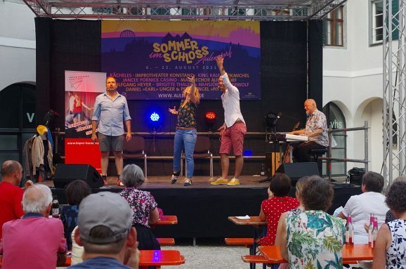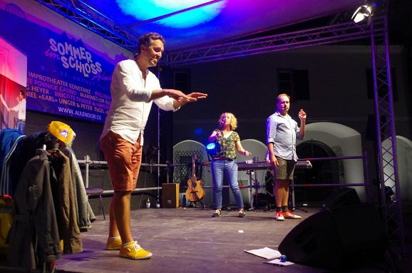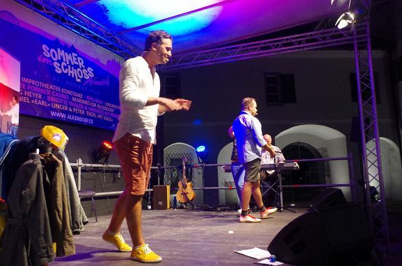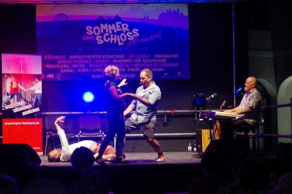 Jetzt wird gerappt und eine CD live eingespielt. Wenn die Technik mitgemacht hat, wir hoffen es, kann man sie vielleicht käuflich erwerben bei www.impro-konstanz.de Geschafft, doch noch etwas was wiederholbar ist. Gedankt werden muss zum Ende aber auch Max Baier, der hauptverantwortlich dafür war, als Steuerberater die Förderanträge für die Aufführungen zu verfassen. Wir packens heißt es nach drei Stunden Spiel.