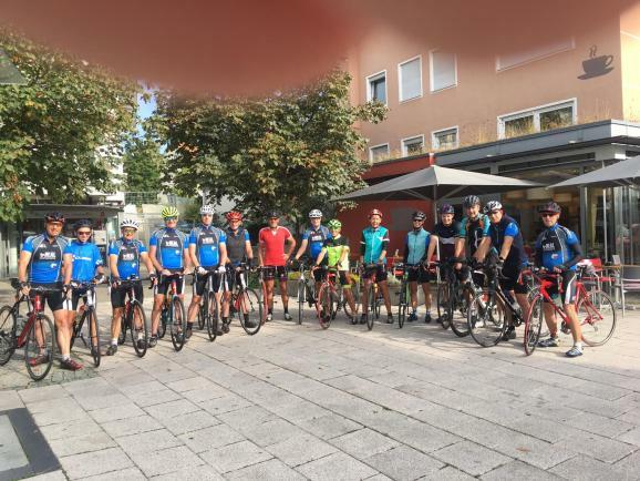 Nach Bad Wurzach wurde bei der Bäckerei in Diepoldshofen eine Kaffeepause eingelegt. Über Leutkirch und Urlau ging es am Badsee vorbei zur Siggener Höhe. Das Allgäu mit seinen Höhen nahe Isny war erreicht. Inzwischen hatte sich auch die Sonne hervorgewagt, sodass eine gemütliche Mittagspause im Biergarten beim „Ochsen“ in Ratzenried. Bevor die nächsten Anstiege anstanden ging es erstmal zwei Kilometer flott hinunter zum Hofgut Dürren. Von dort weiter über Sommersried zum Zeppelindenkmal und nach Röthenbach. Nach Wolfegg waren es die letzten Kilometer in rund 5 Stunden Fahrzeit bei 1058 Höhenmeter bis Aulendorf einer sehr schnellen Abschlussfahrt. Am Abend wurde im Aulendorfer „Rad“, wo sich alle Gruppen wieder trafen, nochmal alles gründlich besprochen.