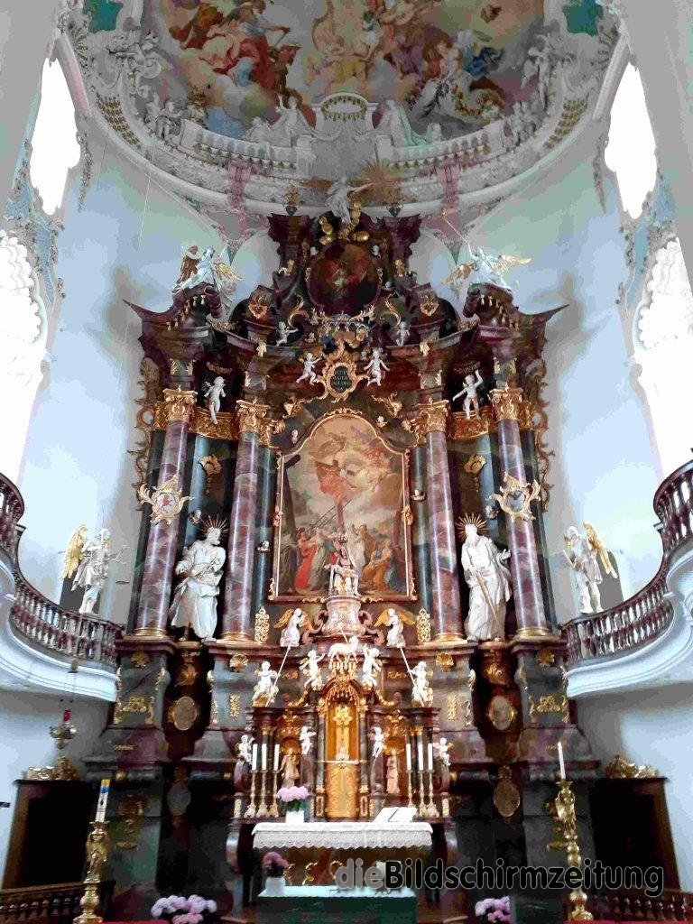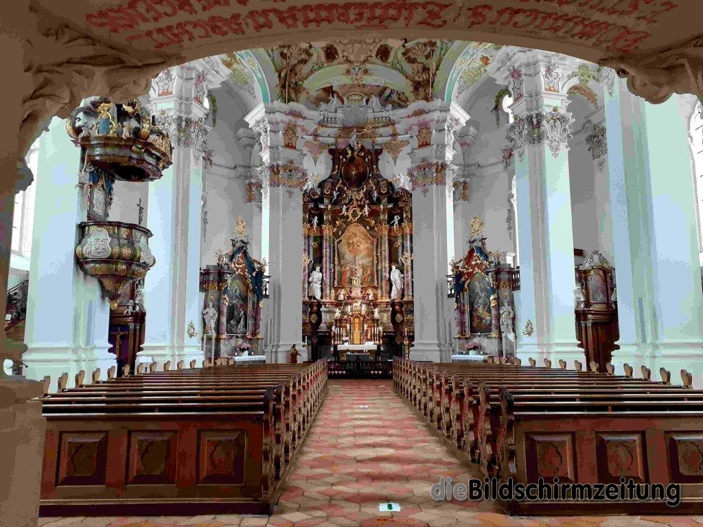 Aulendorf – Nur zwölf Kilometer von Aulendorf entfernt, über Otterswang und Bad Schussenried, gelangt man zur weithin sichtbaren Wallfahrtskirche in Steinhausen, einem Ortsteil von Bad Schussenried. Die von 1728 bis 1733 für die Reichsabtei errichtete Barockkirche wird oft als „schönste Dorfkirche der Welt“ bezeichnet. Ihr Schöpfer Dominikus Zimmermann und sein älterer Bruder Johann Baptist Zimmermann, der das Deckenfresko malte, schufen eines der größten Meisterwerke des frühen Rokoko.