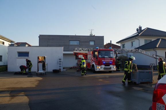 Aulendorf – Um 16:15 Uhr am Donnerstagnachmittag wurde die örtliche Feuerwehr alamiert. Nachbarn hatten das Feuer auf dem Dach eines Bungalows im Alemannenring entdeckt und die Feuerwehr gerufen.