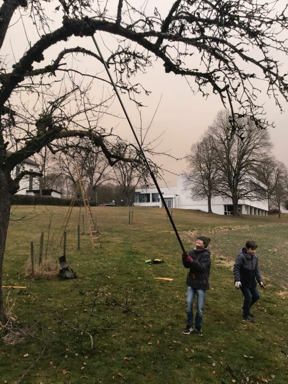 Aulendorf - Mit einigen Schüler*innen der 5ten Klassen hat Eckard Lehmann – Tagesheim und Wald-AG - dieses Frühjahr wieder Obstbäume auf dem Schulgelände geschnitten.