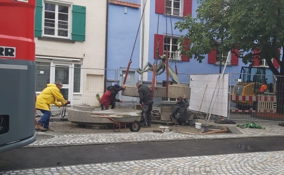 Bad Waldsee - Der Federlesbrunnen auf der Hochstatt ist aus dem Stadtbild von Bad Waldsee nicht mehr wegzudenken. Die durch die Baumaßnahmen "Altstadt für Alle" temporäre Entfernung des Brunnens ist beendet. Der Brunnen ist bereit am 11.11.2021 die nächste Fasnet einzuläuten.