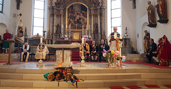 Aulendorf (dbsz) - Am heutigen Fasnetssonntag (19.2.) wurde in der Stadtpfarrkirche St. Martin in Aulendorf wieder Narrenmesse gefeiert. Zelebrant war in Vertretung von Pfarrer Anantham Pater Jonas SVD. Die Narrenpredigt hielt Diakon Schillinger in Versform. Einer der Väter der Aulendorfer Narremesse war Waldemar Münst. In Erinnerung an diesen tüchtigen Zunftmeister, der kürzlich im Alter von 94 Jahren verstorben ist, veröffentlicht die Bildschirmzeitung „Der Aulendorfer“ einen Bericht über die Narrenmesse des Jahres 2004. Entnommen ist der Text dem Buch „Menschenskinder – Notizen aus Oberschwaben“ von Gerhard Reischmann.
