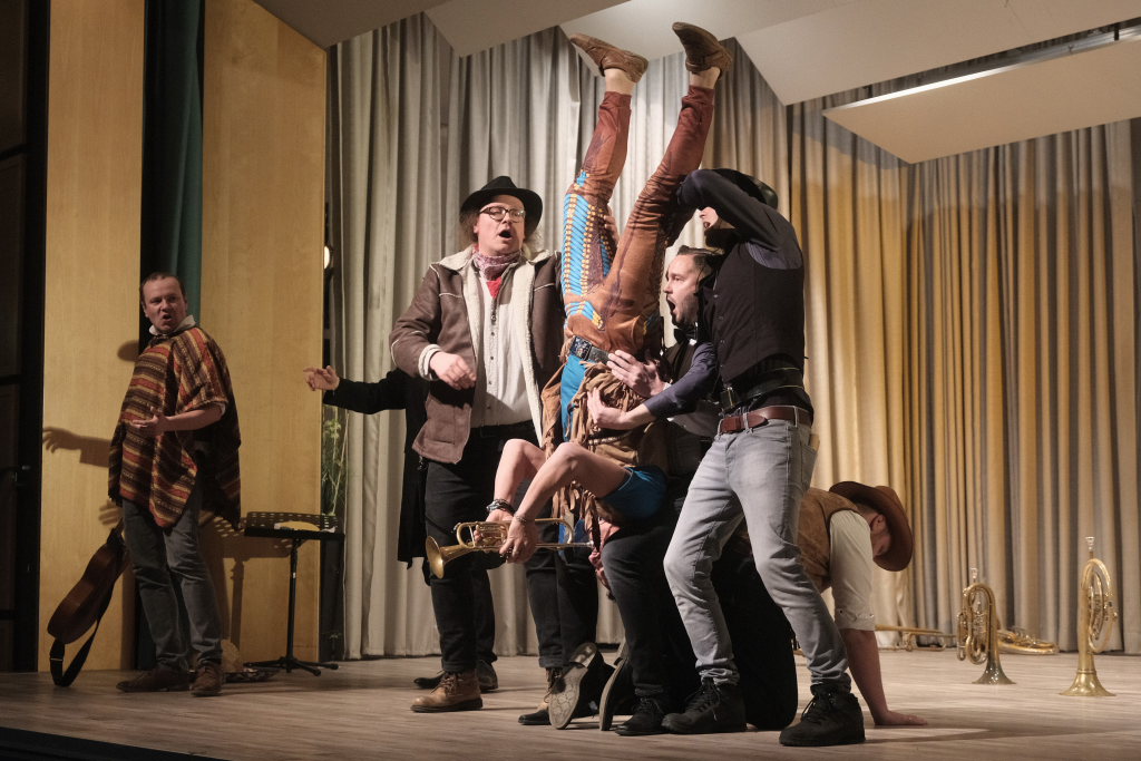 Bad Wurzach - Viel Spaß hatten bei ihrem ersten Auftritt nach der langen Corona-Pause ohne Auftritte die Achtaler Musikanten und „Verstehen Sie Brass“ im Bad Wurzacher Kursaal, die einen mit fein gespielter Blasmusik, die anderen mit Brass- Musik und artistisch-komödiantischen Einlagen.