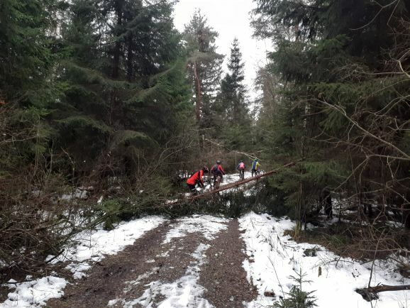 Aulendorf – Mit 13 Mountainbikerinnen – und Bikerinnen, 10 Männer, 3 Frauen startete die SGA um 14 Uhr vom Bahnhof Aulendorf am Steegersee vorbei über Geblisried in den Tannwald und auf den Biberpfaden durch immer wieder durch in den Weg gefällte Bäume zum Abstoppen gezwungen.