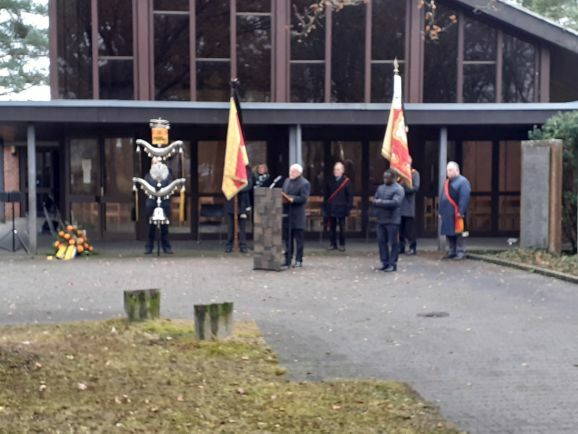 Aulendorf - Zum 20jährigen Bestehen der Gedenkstätte findet wie in den vergangenen Jahren auch dieses Jahr eine Gedenkfeier zum Volkstrauertag auf dem Friedhof statt, bei der weltweit an die Toten von Kriegen und Gewalt erinnert wird. Musikalisch umrahmt von der Stadtkapelle zu Beginn und zum Ende der Feier, hält Bürgermeister Matthias Burth eine Ansprache, wobei er an die humanitäre Verpflichtung appelliert, denn ein gelebtes Bekenntnis mache uns zu dem, was wir sind.