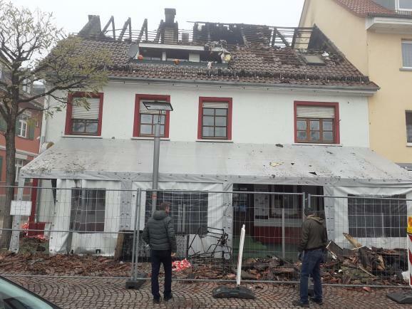 Aulendorf - Nach dem Brand im Dachstuhl des Bistros "Kaktus" beginnen die Aufräumarbeiten. Nach Schätzungen der Polizei entstand ein Sachschaden in Höhe von 250 000 Euro.