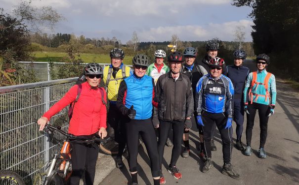 Aulendorf - Wieder samstags 14 Uhr, Abfahrt am Bahnhof, treffen sich die Mountainbiker der SG Aulendorf zu einer gemeinsamen Ausfahrt. Dieses Mal mit elf Radlern, darunter drei Frauen ging es nach Bad Schussenried am Bikepark vorbei nach oberer Schorren und Roppertsweiler am Bahngleis entlang zum Schussenursprung.