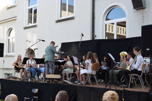 Aulendorf - Die musikalischen Ensembles des Studienkollegs haben am Samstag, den 8. Juli ein vielseitiges und unterhaltsames Programm auf die Bühne gebracht. Der Innenhof wurde an diesem lauen Sommerabend zu einem belebten Ort: Zahlreiche Gäste suchten sich ihre Lieblingsplätze, Akteure stimmten sich kurz vor Konzertbeginn ein und die Schülerinnen und Schüler der Jahrgangsstufe 1 sorgten für das leibliche Wohl mit Getränken und Snacks.