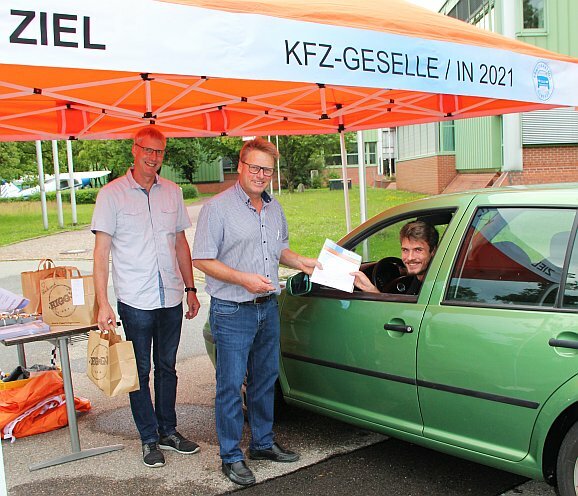 Region - Besondere Zeiten erfordern besondere Maßnahmen, um den Lehrabschluss der Kfz-Mechatroniker/innen gebührend zu feiern. Passend zum Ausbildungsberuf findet die Lossprechung der Junggesell/innen in diesem Jahr am „Drive-In“- Schalter statt.