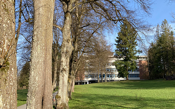 Bild: Alter Baumbestand, wunderschön am Stadtsee gelegen: Das Krankenhaus Bad Waldsee wird nach 116 Jahren dichtgemacht. Foto: Margit Reischmann