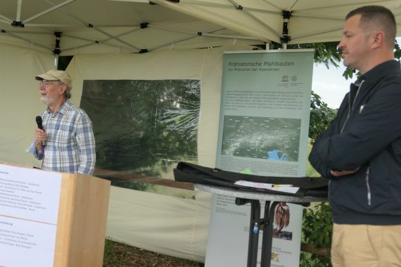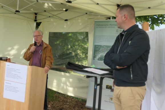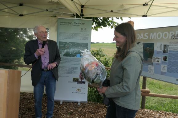 Oberbürgermeister Matthias Henne freute sich, dass Renate Ebersbach, die Leiterin der Feuchtbodenarchäologie vom Landesdenkmalamt zu diesem Ereignis vor Ort weilte. Er zollte hohes Lob für das Herzblut, welches hier ehrenamtlich eingebracht wurde. „Leider wurde von der Stadt Bad Waldsee bisher dieses doch an manchen Stellen stiefkindlich behandelt, in Zukunft wollen wir aber als enger Partner mit dabei sein“. Diese Bekundung des Stadtoberhaupts wurde mit großem Beifall der knapp 100 Besucher bedacht.