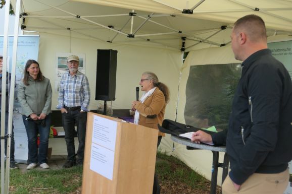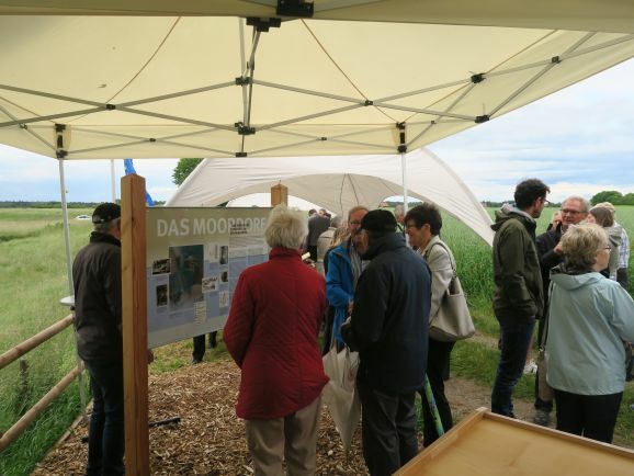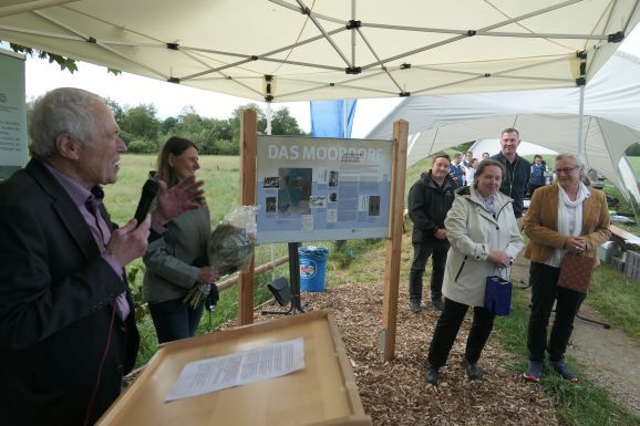 Als „Ein Kulturgut von ganz besonderer Bedeutung“ stufte Renate Ebersbach das Moordorf Reute ein: „Man kann nur schützen, was man kennt“. „Auch wenn es Reute mit dem Antrag des Gemeinderats der Stadt Bad Waldsee im Jahre 2009 nicht in die Liste ‚UNESCO-Weltkulturerbe‘ geschafft hat, ein internationaler Bekanntheitsgrad ist aber damit erreicht“. Sie lobte Silvia Weiß für die sehr gelungene Gestaltung der beiden Schautafeln. Als Leiterin des Fachbereichs „Feuchtbodenarchäologie des Landesdenkmalamts möchte sie gerne im Reutener Moordorf Pegel setzen lassen, um hier Aufschluss über mögliche Veränderungen in Sachen Klimawandel zu erhalten und feststellen zu lassen, ob ein weiterer Schutz des Kulturdenkmals erforderlich ist.