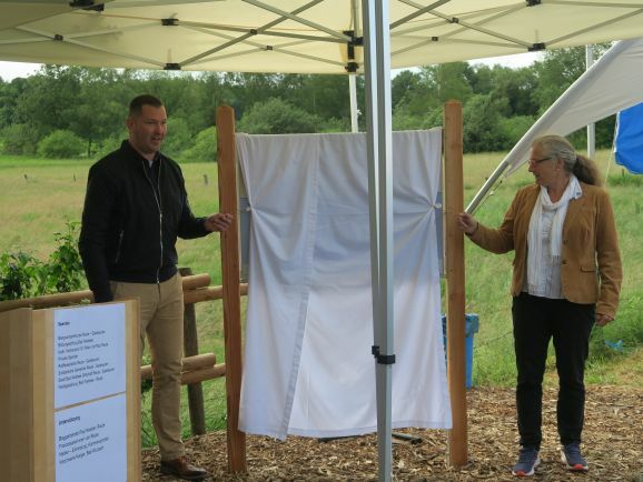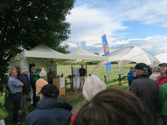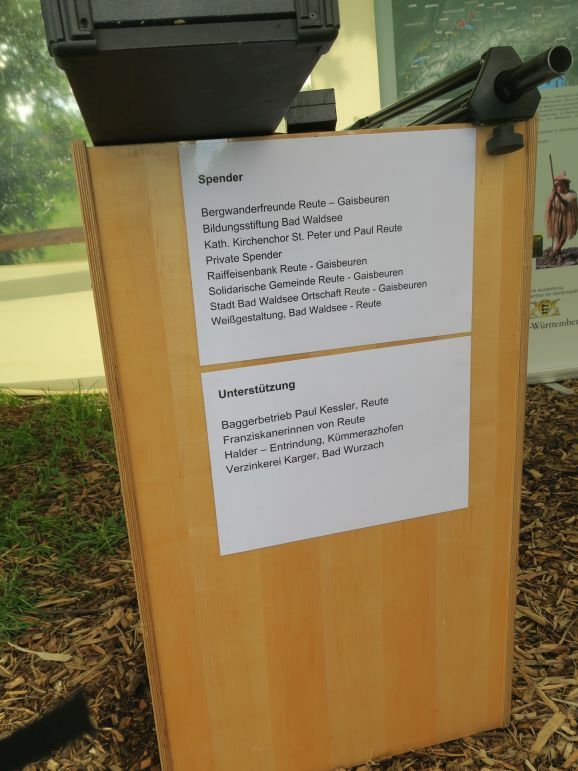 Neben Ortsvorsteher Achim Strobel mit Ortschaftsräten waren die Fraktionsvorsitzenden des Gemeinderats Bad Waldsee sowie viele Mitglieder der örtlichen Vereine gekommen. Franz-Daniel Pfaff repräsentierte die Bildungsstiftung Bad Waldsee, welche sich hier wie z.B. die örtlichen „Bergwanderfreunde“ auch finanziell engagierte. Weitere Firmen und auch Privatpersonen zählen zu den Sponsoren.