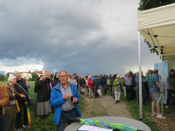 Der Standort der Schautafeln kann von der Straße nach Obermöllenbronn, etwa 300 Meter vom Kloster Reute entfernt, erreicht werden. So war es auch nicht verwunderlich, dass Generaloberin Schwester Maria Hanna mit vielen Mitschwestern und auch Klosterpfarrer Ulrich Steck dem Festakt beiwohnte.