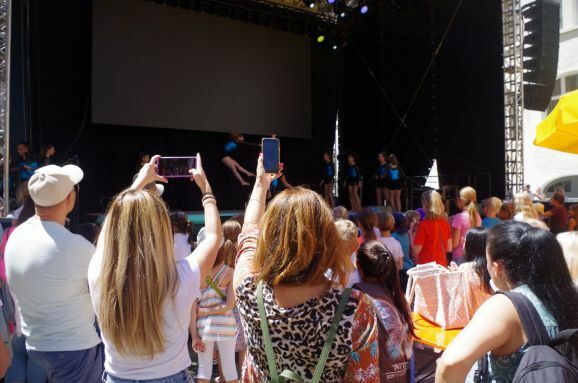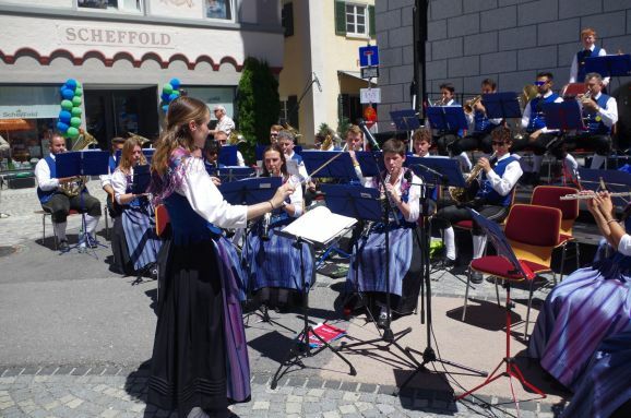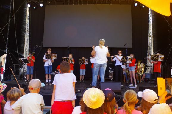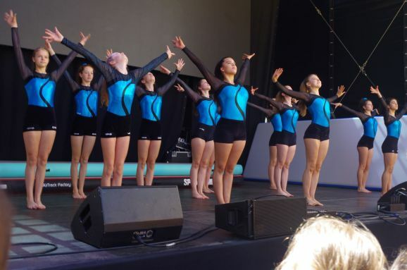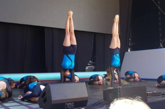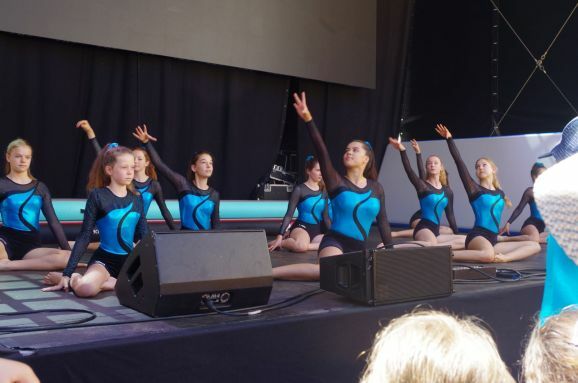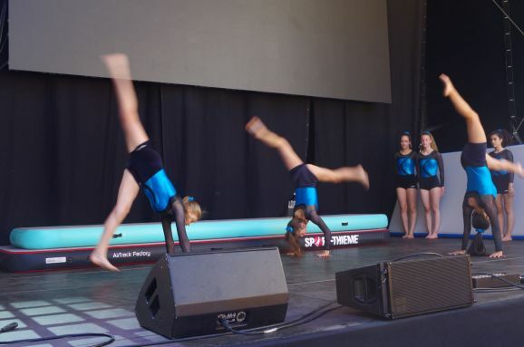 Auch trage das gute Wetter dazu bei, nicht zu heiß, bemerkt er noch. Dann treten schon die Mädels, Abteilung Geräteturnen vom TSV Reute in Aktion. Ihre Show mit Saltos, Handstand, Überschlag und mehr freut die kleinen Zuschauer vorne an der Bühne und auch die Erwachsenen in der zweite Reihe auf den Bänken sitzend. 15 Minuten Akrobatik pur der Vize-Landesmeisterinnen