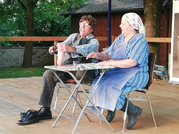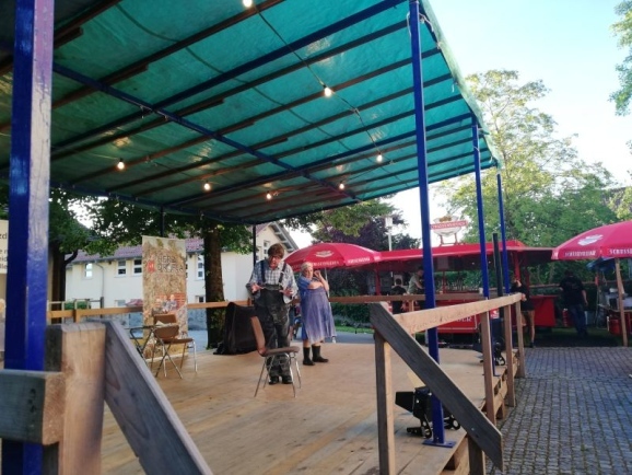 Michelwinnaden - Über das tolle Wetter und die lauen Sommerabendtemperaturen freuten sich die Besucher des Kabarett-Abend anlässlich des Burggrabenfestes in Michelwinnaden. Das schöne Wetter machte es möglich, dass noch viele Fans von Hillu’s Herzdropfa den Kabarett-Abend besuchen konnten. Wie groß das Interesse am Auftritt der beiden Künstler von der Schwäbischen Alb war, zeigten die vielen wartenden Besucher, welche lange vor der Einlasszeit bereits nach Michelwinnaden gekommen waren.
