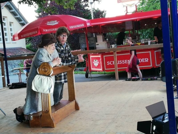 Mit vielen kleinen Geschichten, wie z.B. einem gemeinsamen Kirchenbesuch oder einem Auftritt als Malergesell und Stift begeisterten Hillu‘s ihr Publikum. Das Publikum war begeistert dabei, lachte viel und erlebte einen lustigen Abend im schönen Burghof.