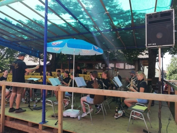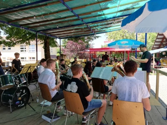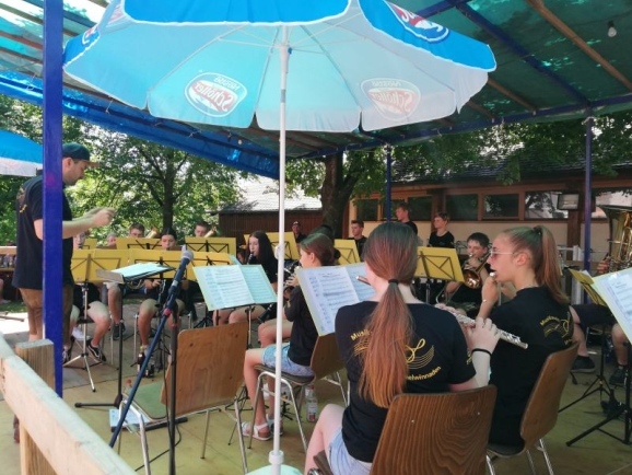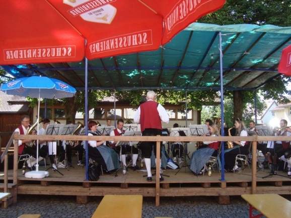Zum Abschluss des gelungenen Burggrabenfestes unterhielt eine kleine Besetzung des Musikvereins Michelwinnaden noch die Zuhörer welche im Schatten noch ein kühles Getränk genossen. Da Dirigentin Karin Michele verhindert war, übernahm Klaus Preiß den Taktstock.