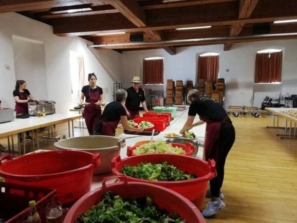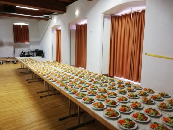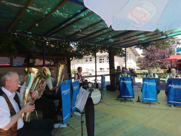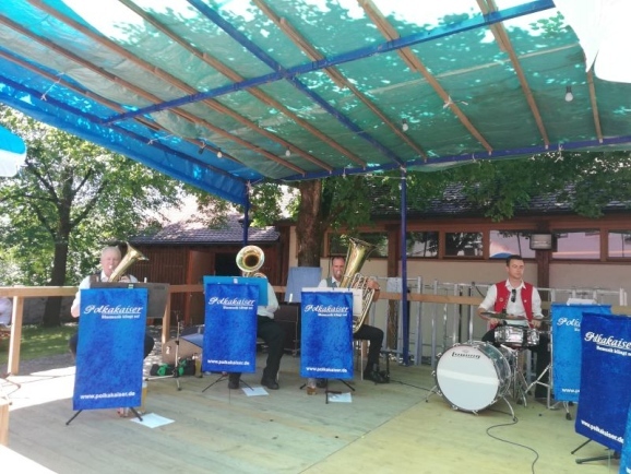 Viele Besucher ließen sich auch von der Hitze nicht abschrecken, da sie sich bereits auf das leckere Mittagessen mit den vielen selbstgemachten Salaten freuten. Die Musiker von Polkakaiser unterhielten hierbei mit einem abwechslungsreichen Programm mit vielen bekannten Polkas.