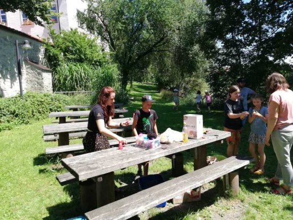 Die kleinen Festbesucher konnten am Burgweiher bei den vielen Spielaktionen mitmachen, welcher der Förderverein organisiert hatte. Kristina Hepp bastelte mit den Kids kleine Wutbälle. Die Kinder konnten ihrer Kreativität freien Lauf lassen und lustige oder grimmige Gesellen gestalten.