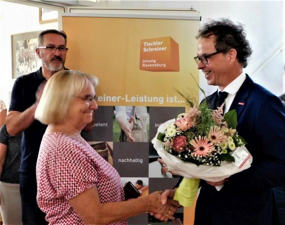 Der Obermeister der Schreinerinnung Ravensburg Michael Bucher (Bad Waldsee-Hittelkofen) war erfreut über den großen Besucherandrang und begrüßte ganz besonders die Ortsvorsteherin Rosa Eisele und deren Stellvertreter Matthias Covic und bedankte sich bei der Stadt für das stets gezeigte große Entgegenkommen bei Planung, Vorbereitung und Durchführung der Ausstellung.
