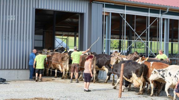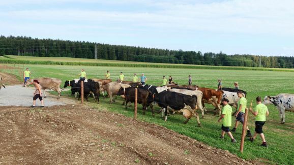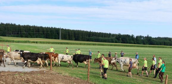 Schließlich galt es am Tag vor Beginn der Sommerferien in Baden-Württemberg noch den Umzug der Milchkühe aus dem Ortszentrum von Haisterkirch in die neuen Stallungen des Aussiedlerhofs zu bewerkstelligen.