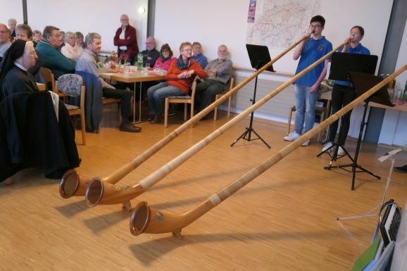 Beifallsstürme erntete auch das jüngste Alphorntrio Oberschwabens mit Theresa (14 Jahre) und Jonathan Maucher (16 Jahre) und Francesco Brändle (16 Jahre) mit immer gern gehörten Alphornklängen. Besonderen Dank und Anerkennung ließ Konstantin Eisele Schwester Egfrieda vom Kloster Reute zukommen, über viele Jahre war sie Mitglied im Leitungsteam „Besuchsdienst“. Ebenso Hedwig Allgayer, welche sich vorbildlich viele Jahre in der Nachbarschaftshilfe engagierte. Hohes Lob galt der jetzt zehn Jahre bestehenden Anlaufstelle des Vereins mit Maria Eisele, Waltraud Hoch und Gertrud Reihs.