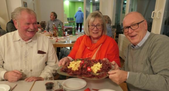 Nach kurzweiligem Dreistunden-Programm wurde zum ins Motto passenden Vesper geladen: Zum deftigen Bündner-Fleisch und würzigem Appenzeller Käse durften die Gäste neben Valser Wasser und Schweizer Bier auch ausgewählte Weine aus dem Schweizer Anbaugebiet schlürfen. Bewirtet wurden die Gäste vom Vorstandsteam. Mit dem nochmaligen Auftritt des Singkreises klang ein fröhlicher und harmonischer Danke-Nachmittag aus.