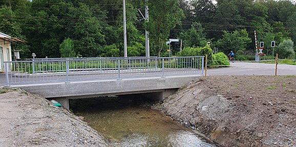 Reute-Gaisbeuren - Fast zeitgleich mit der Fertigstellung der Vorbereitung für die Elektrifizierung der Südbahn und der Wiederaufnahme des Zugverkehrs konnte auch die Brücke über den Durlesbach, welche zum Bahnhof führt, fertiggestellt werden. Die Brücke ist wieder befahrbar, die ganze Baumaßnahme aber noch nicht vollends fertiggestellt.
