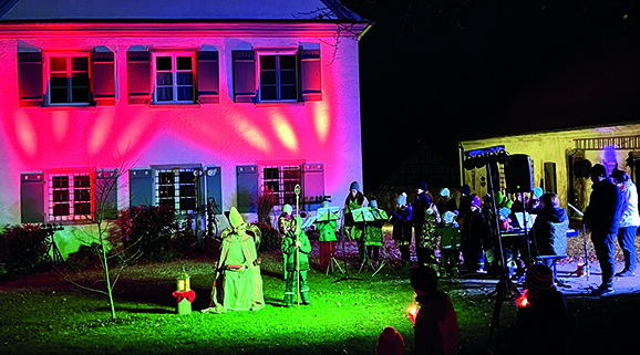 Pünktlich nach Einbruch der Dämmerung präsentiert sich der Pfarrgarten in Michelwinnaden in heimeliger Atmosphäre. Fackeln, über das Gelände verteilt, und die in warme Farben angeleuchteten Gebäude sowie eine große Anzahl Kerzen, mitgebracht von den Besuchern, bildeten eine ganz besondere Kulisse für den anstehenden Besuch des Nikolaus. Empfangen wurde dieser durch die Blockflötenkinder und das Johannes-Chörle, beide unterstützt von Martina Spähn und Theresia Fischer. Frau Fischer begrüßte den Nikolaus und führte charmant und einfühlsam die Kinder und Erwachsenen durch die Feierlichkeit. Zum Schluss des Besuches verteilte der Nikolaus an jedes Kind eine kleine Gabe. Nach der Feier blieben noch viele Besucher bei Glühwein und Punsch, um sich auszutauschen und das besondere Ambiente zu genießen.