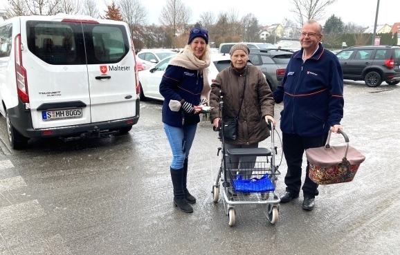 Dies alles ermöglicht der „Mobile Einkaufswagen“ des Malteser Hilfsdienstes Ravensburg, der Seniorinnen und Senioren aus Pflegeheimen und Wohnanlagen bei Einkäufen im Supermarkt oder in Fachgeschäften begleitet. Kurz vor Weihnachten haben die einfühlsamen „Einkaufsengel“ Nicole Lichanin und Norbert Scheffler zwei Bewohnerinnen des Wohnparks St. Martinus Blitzenreute auf spiegelglatter Straße zum nahen Rewe gefahren, gemeinsam eingekauft und zum Abschluss im dortigen Café noch eine Tasse Kaffee getrunken.