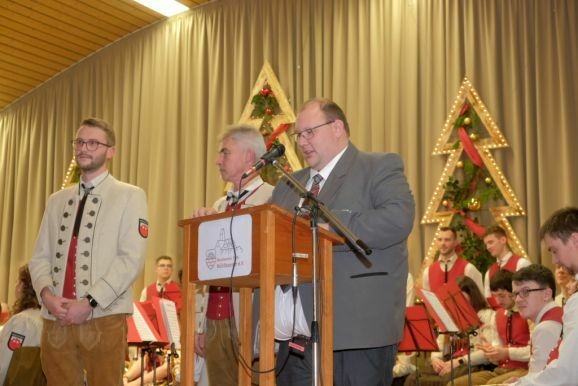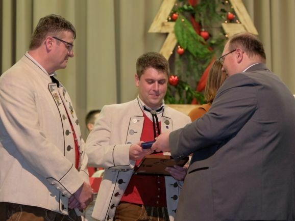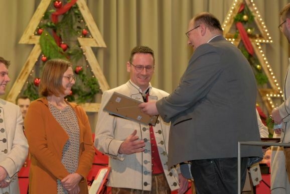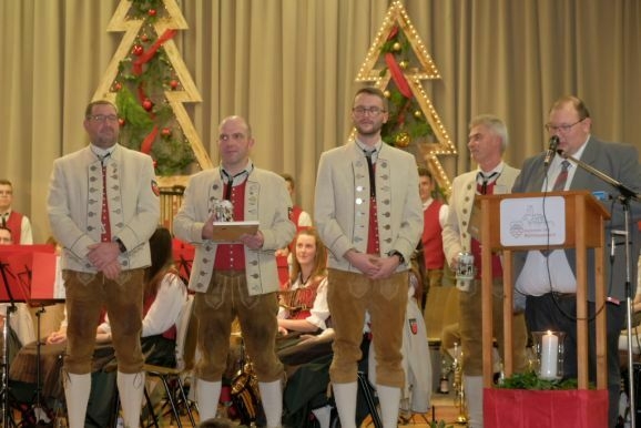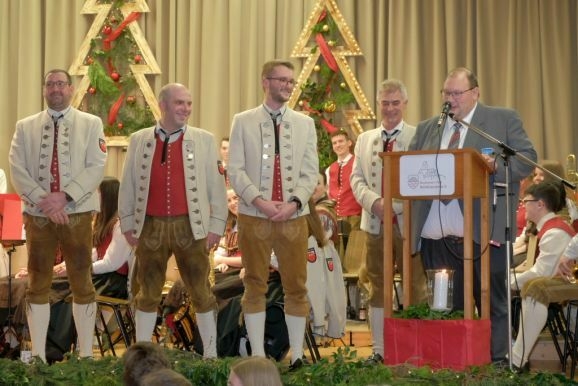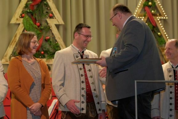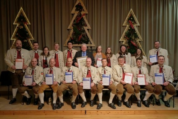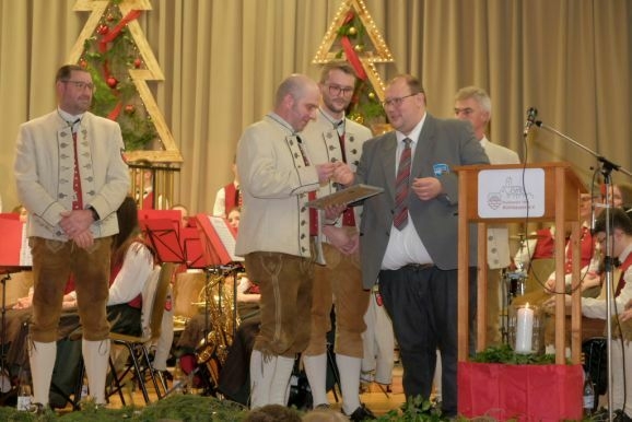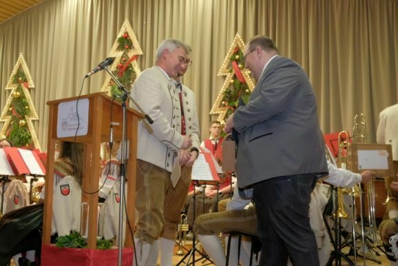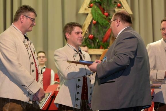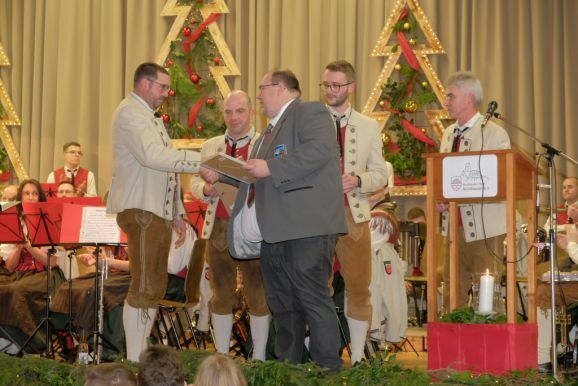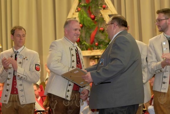 Für 20 Jahre aktive Musikantentätigkeit erhielt Tubist Andreas Branz die BVBW Ehrennadel in Silber für 20-jährige aktive Tätigkeit. Zusätzlich zeichnete Bitterwolf ihn für seine 10jährige Tätigkeit als Beisitzer im Vorstand mit der Fördermedaille in Bronze mit Urkunde aus.