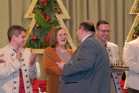 Auch sie erhielt BVBW Förderermedaille in Silber mit Urkunde für ihre 15jährige Tätigkeit im Vorstand. Eine ganz besondere Ehrung wurde Karl Sauter von Vereinsseite zuteil, der vor 54 Jahren seine Ausbildung am Flügelhorn begann und seit 1996 im Bassregister musizierte. Er war seit 1977 in verschiedenen Positionen im Vorstand tätig, ehe er 1985 zum ersten Vorsitzenden gewählt wurde, das Amt das er bis 2006, dem Jahr an dem der MV das Kreismusikfest ausrichtete, ausübte.